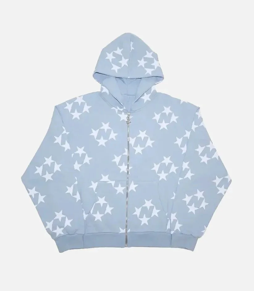 Home HOODIE 99 Based Star Print Zip Hoodie Sky Blue